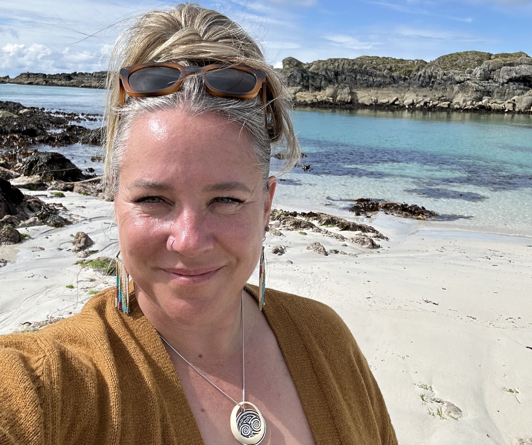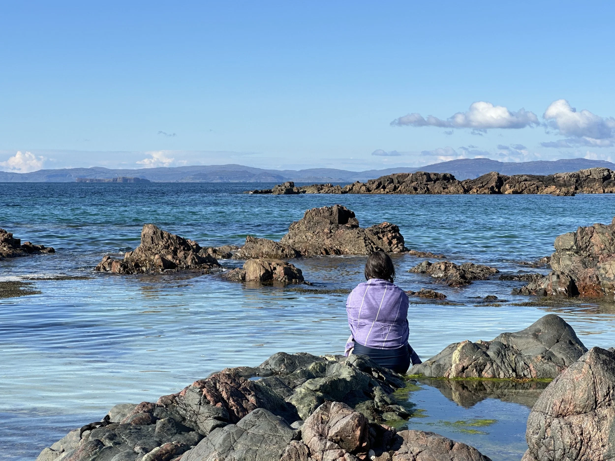 You will also be invited into participatory, place-based experiences: walking the labyrinth and shoreline of St Columba's Bay, transforming a found stone into a simple wearable talisman, and engaging the island’s creative pulse through its folk art traditions—including teachings connected to the Gaelic lineage of Aosdàna, the poetic keepers of story and memory.