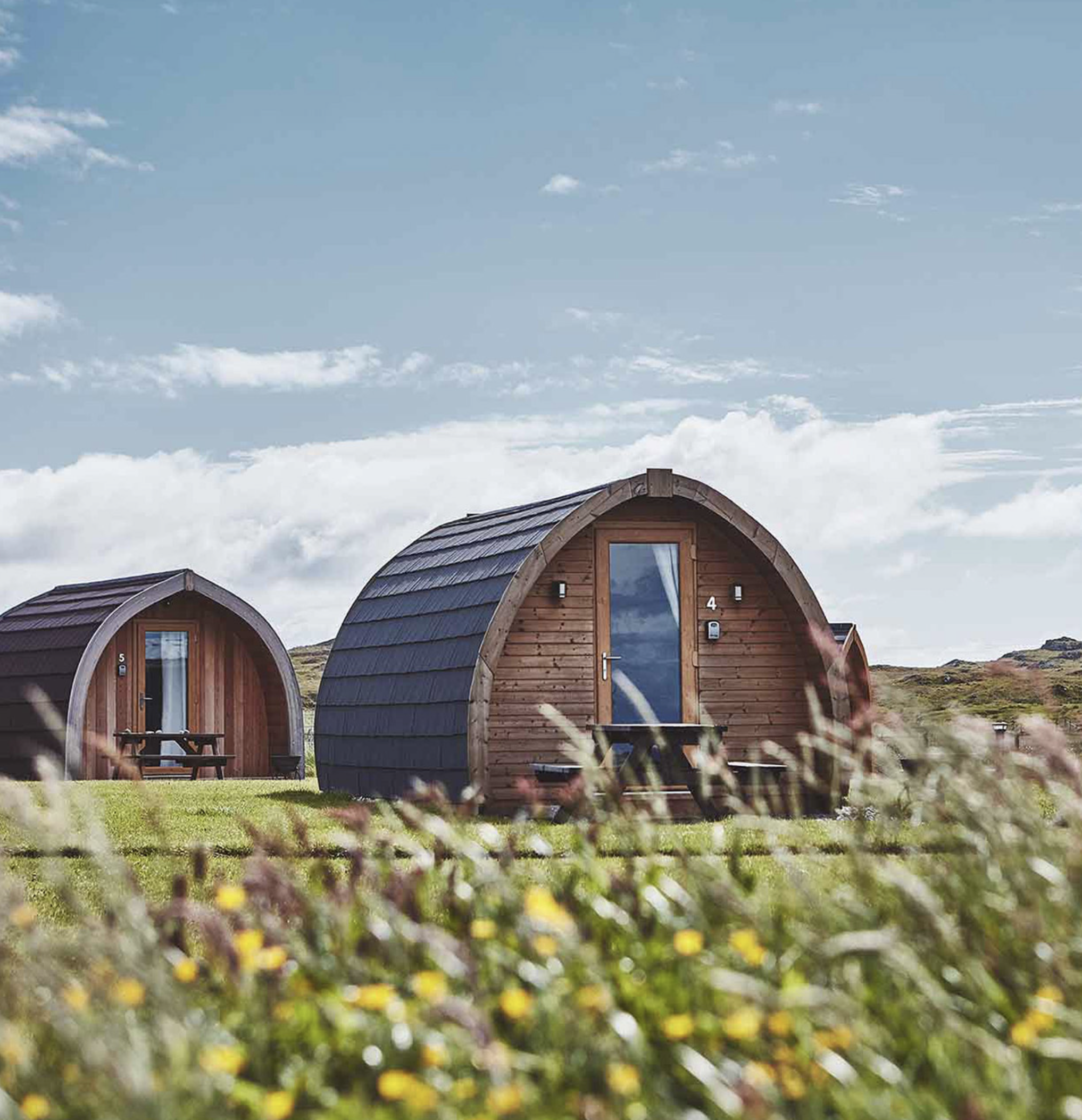 Set upon a family-held croft, the Iona Pods overlook the sound toward Mull’s mountains, with wide skies and ever-changing light. Whether you are sipping tea at your doorway, gathering near the fire pit, or watching the sun soften over Dùn Ì, this place invites a deep exhale.