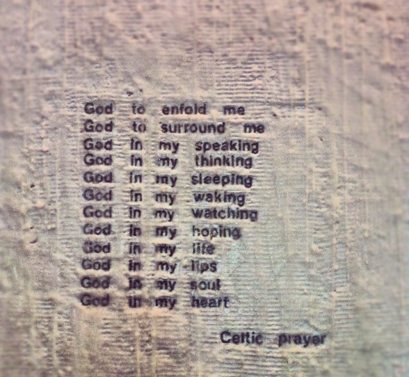 The Celtic tradition perceives God’s presence in and through all the mundane and domestic details of daily life. No moment in the daily round is too small or insignificant to be an occasion to experience Spirit. The most common of chore is seen as an occasion to be in the posture of prayer. This prayer was offered following the rhythym of awakening and tending to the hearth. May this blessing be an invitation to you to transform a place in your home that daily calls you to the warmth of all the gifts you have been given and urges you to share what you have with the world.
