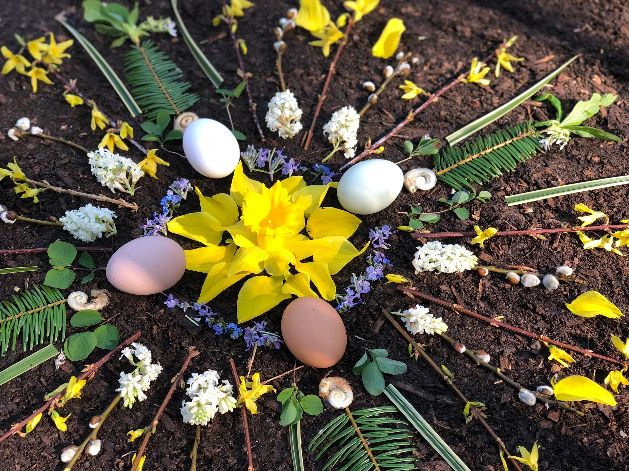 Equinox Eggs—lovely eggs laid by our lovely hens. Eggs are symbolic in this season of the return of vibrant life after a long and cold winter.